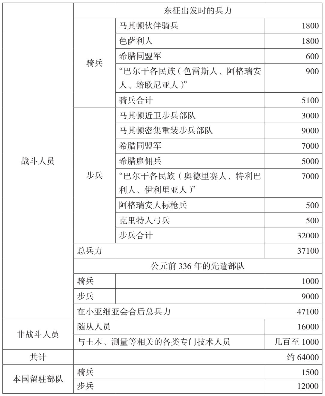 亚历山大的兵力