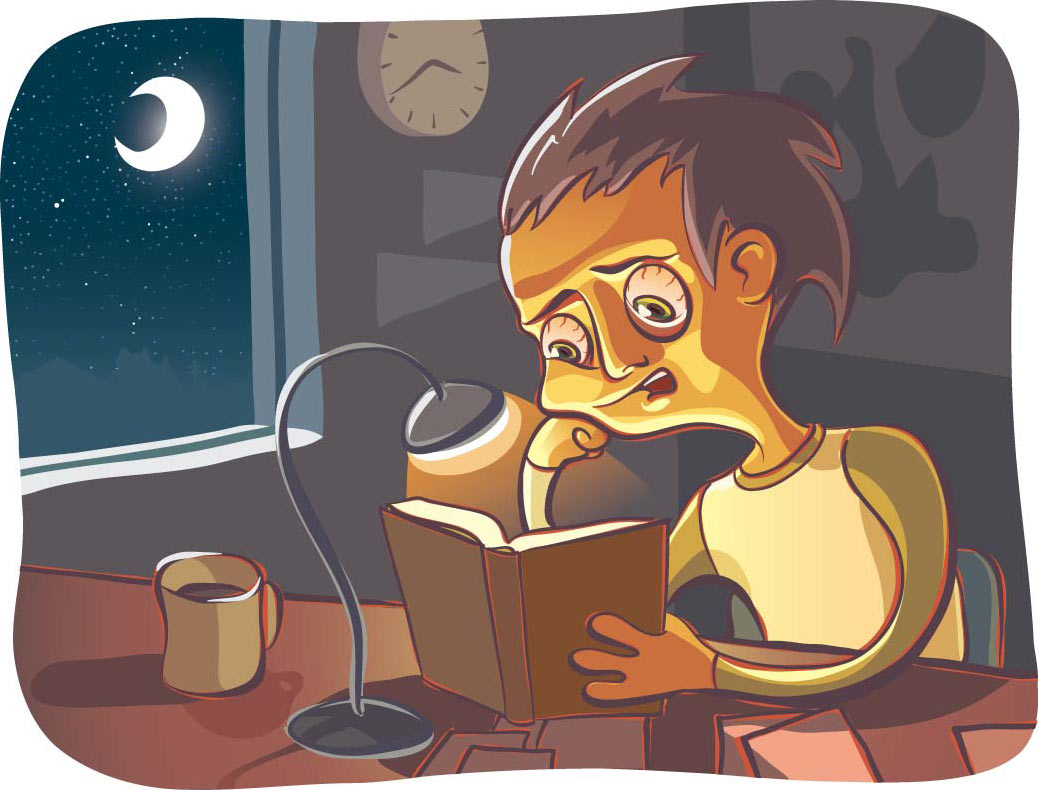 pull an all-nighter 熬夜看书