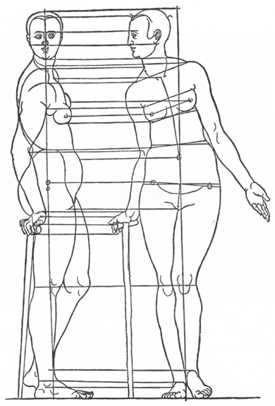 丢勒(D ü rer)认为,理想的裸像应该选取甲的脸孔、乙的胸部、丙的双腿、丁的双肩、戊的双手等。