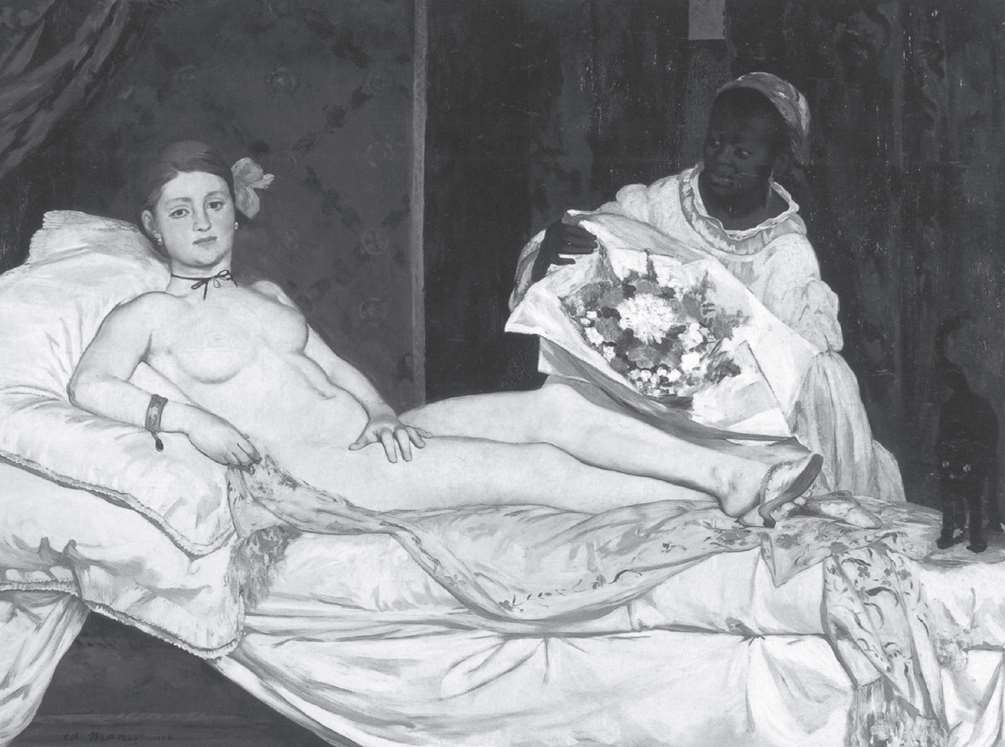 在现代艺术中,裸像类别的重要性已今非昔比。艺术家自己也开始对它提出质疑。在这方面,正如在其他方面,马奈(Manet)代表了一个转折点。假如把他的《奥林匹亚》同提香(Titian)的那幅原作进行比较,可以看到一位扮演传统角色的女人,开始不无轻蔑地质疑那角色。