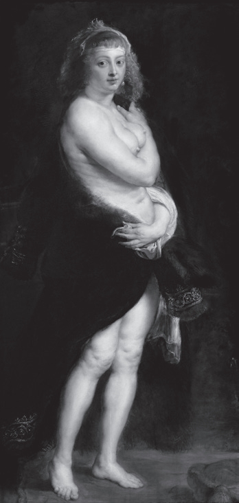 让我们察看一幅特别的裸体画像。这是鲁本斯(Rubens)的创作,画中人是他第二任妻子。结婚时他的年纪比她大多了。