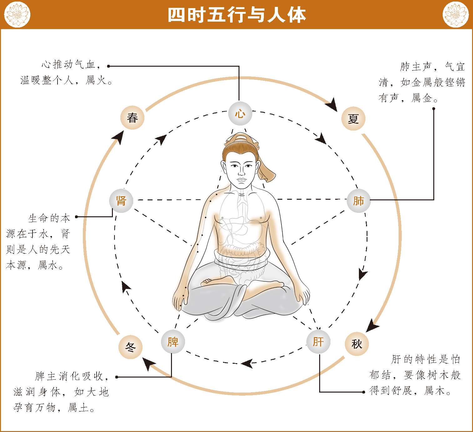自然界有春、夏、秋、冬四季,对应金、木、水、火、土五行的变化,以顺应春生夏长、秋收冬藏的时令,同时产生寒、暑、燥、湿、风五种气候的变化。人有肝、心、脾、肺、肾五脏,化生出五脏之气,转化为喜、怒、悲、忧、恐五种情绪。所以喜怒的情绪损伤气,而寒气热气侵袭,则会损伤身体。大怒伤阴气,大喜伤阳气。最可怕的是气逆上冲,血脉阻塞,气与身体分离。喜怒如果不加以节制,过度违背寒暑节气的生活规律,生命就有危险了。因此,阴气过旺就会转化为阳,而阳气过盛,必然会转化为阴。所以说冬天寒气侵袭过多,到了春季就容易发生热性病;春季患了风寒,到了夏季就容易生飧泄病;夏季如果暑气过重,那么秋季就容易生疟疾;假设秋季感染湿气过浓,冬季就会出现咳嗽的症状。