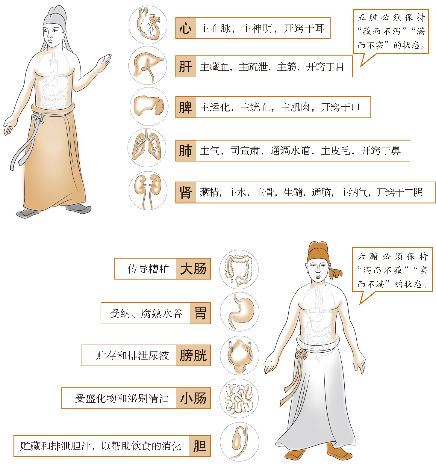 脏贮藏精气,如肝藏血,肺主气,肾藏精。所藏精、气、血不应无故外泻,而应保持充满,使其能充分发挥生理效应。