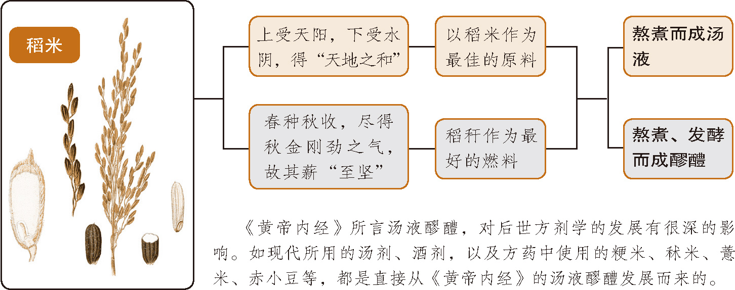 汤液和醪醴,是以五谷作为原料酿制而成。古代用五谷熬煮成的清液作为五脏的滋养剂,即为汤液;用五谷熬煮,再经发酵酿造而成,作为五脏病治疗剂的,即为醪醴。