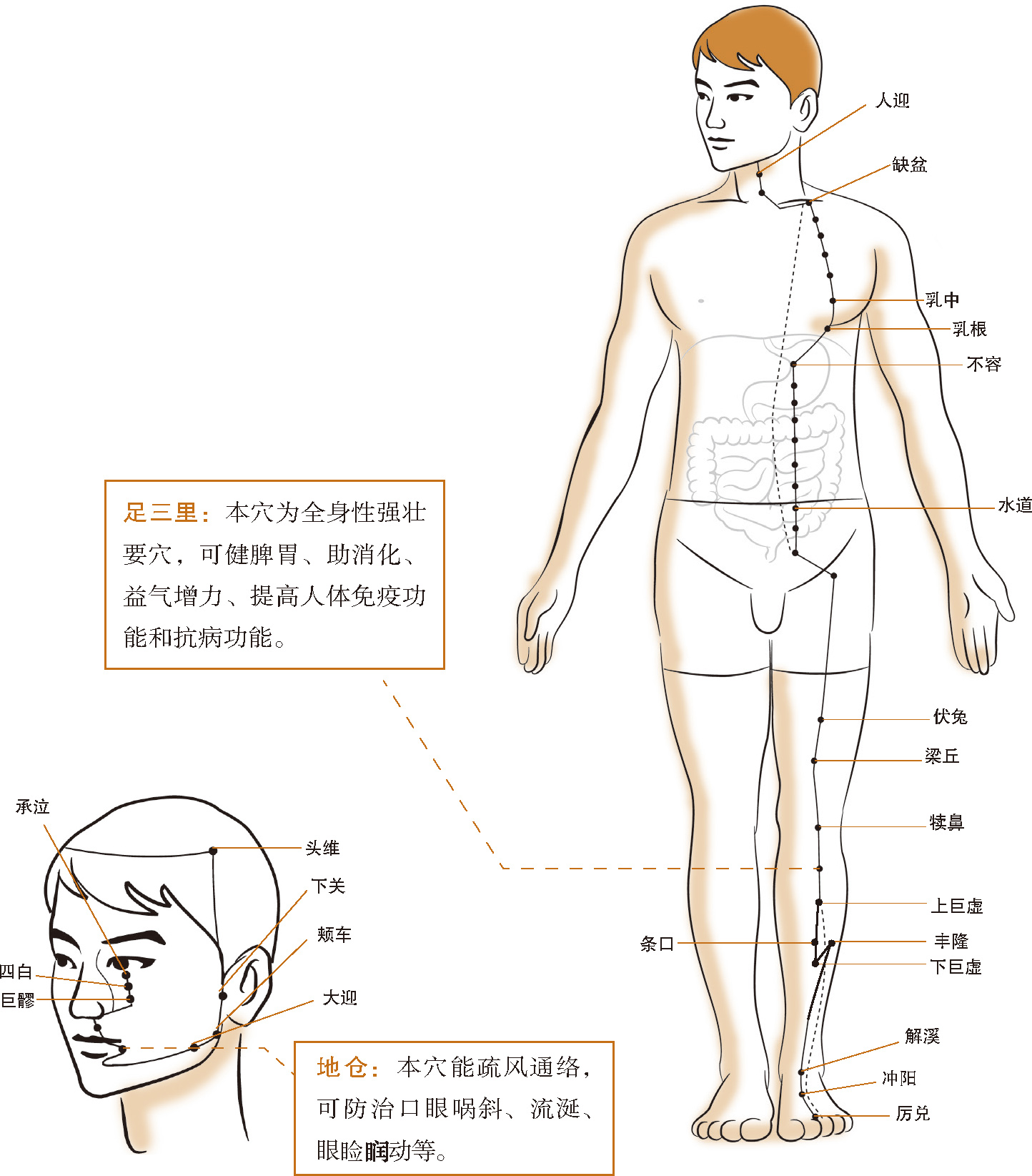 本穴和胃理气、化湿消滞,是增强后天之本—胃气的保健穴,对胃痛纳少、腹胀肠鸣、呕吐、脾胃虚弱疗效较好。