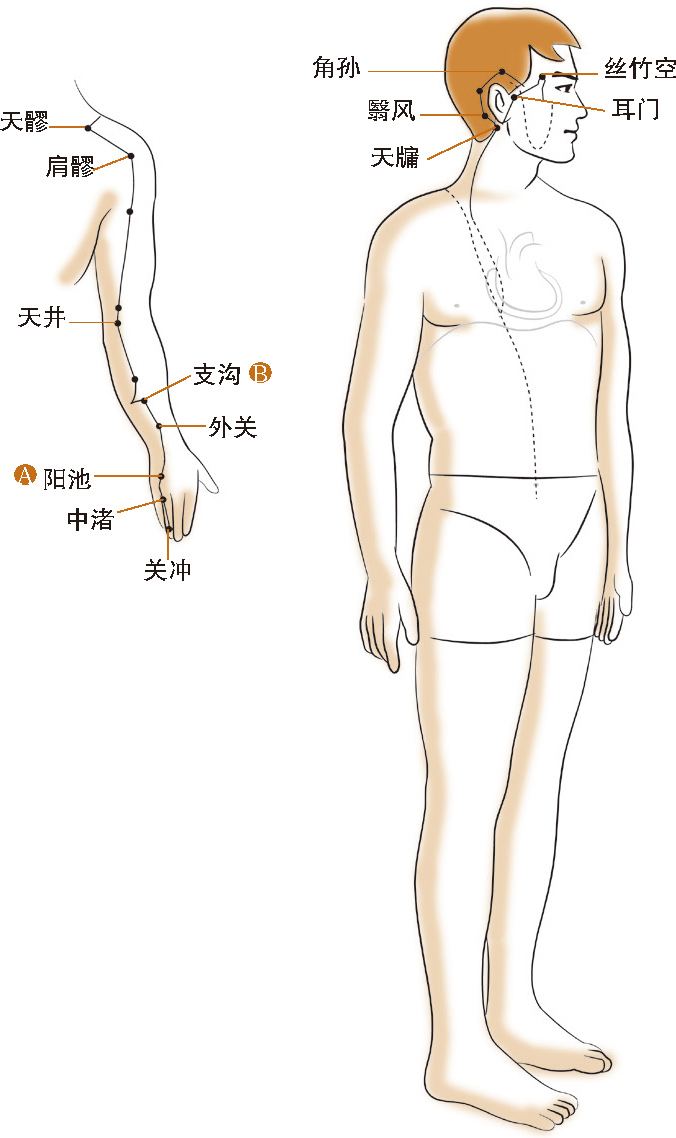 ● 支沟: 本穴能理气解郁,疏通腑气,通经络,能较好地防治便秘、胁肋痛、耳鸣耳聋。