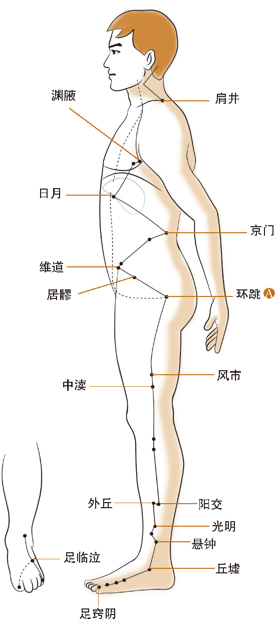 循 行: ①起于季胁部的下面,斜向下行到带脉、五枢、维道穴;②横行绕身一周。
