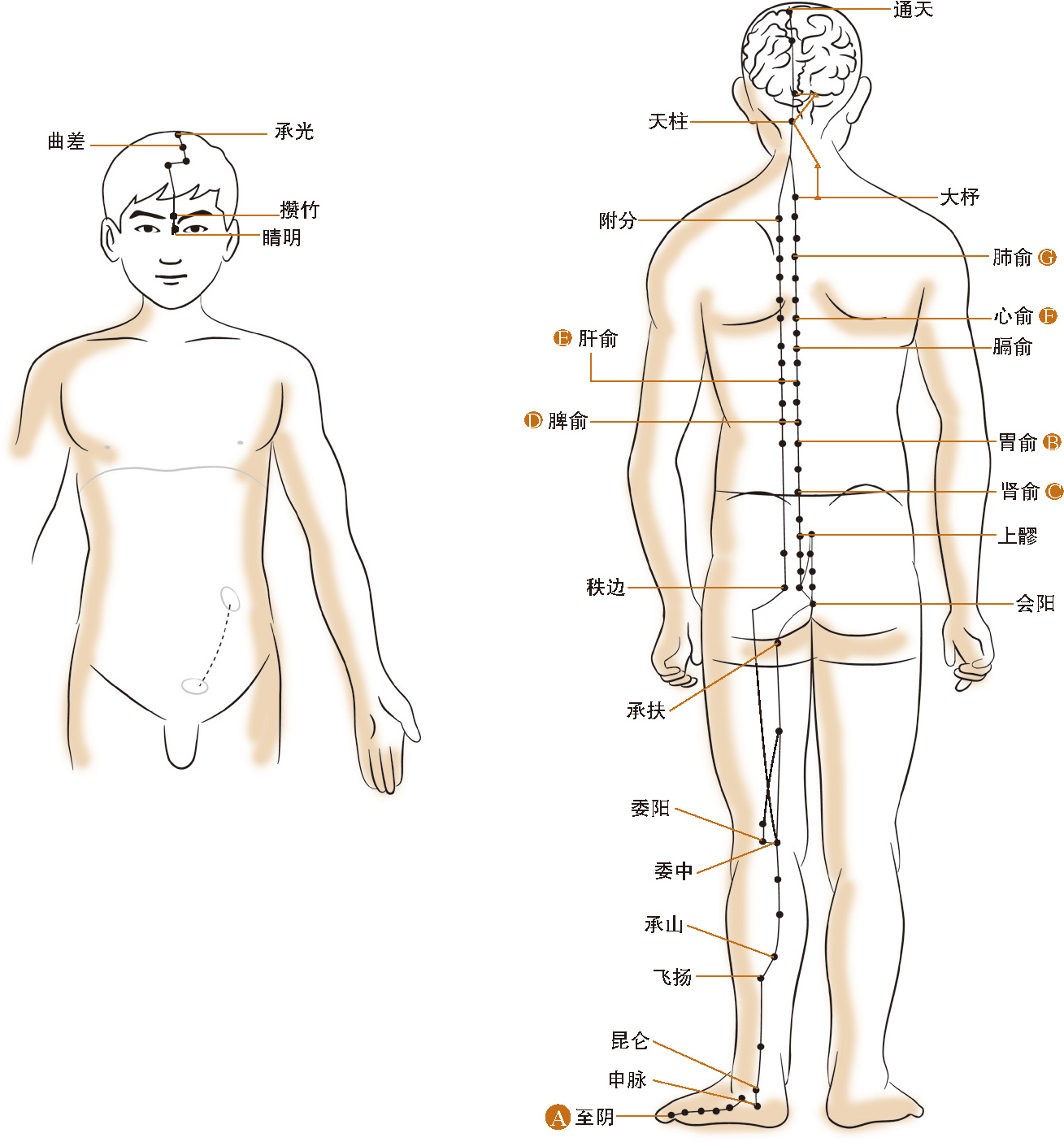 本穴能清头目、通血脉、理气机,对头痛目眩、鼻塞、胎位不正有防治作用。