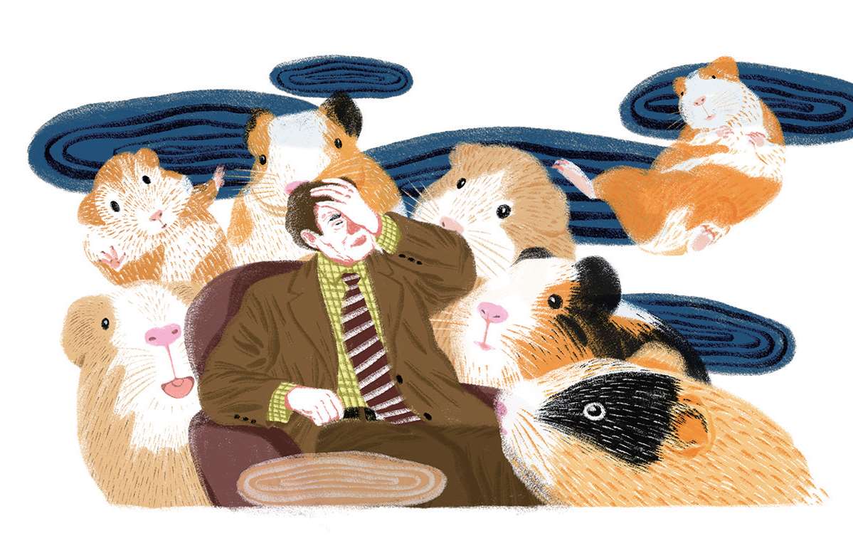 又过了几个月,弗兰纳里发现房间里的几内亚猪增加到160只了。他简直要急疯了!