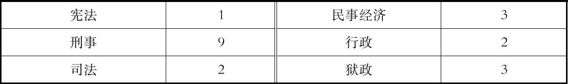 等。现对80年代学者的中国法制史部门法研究著作作一个粗略统计,如表2-3