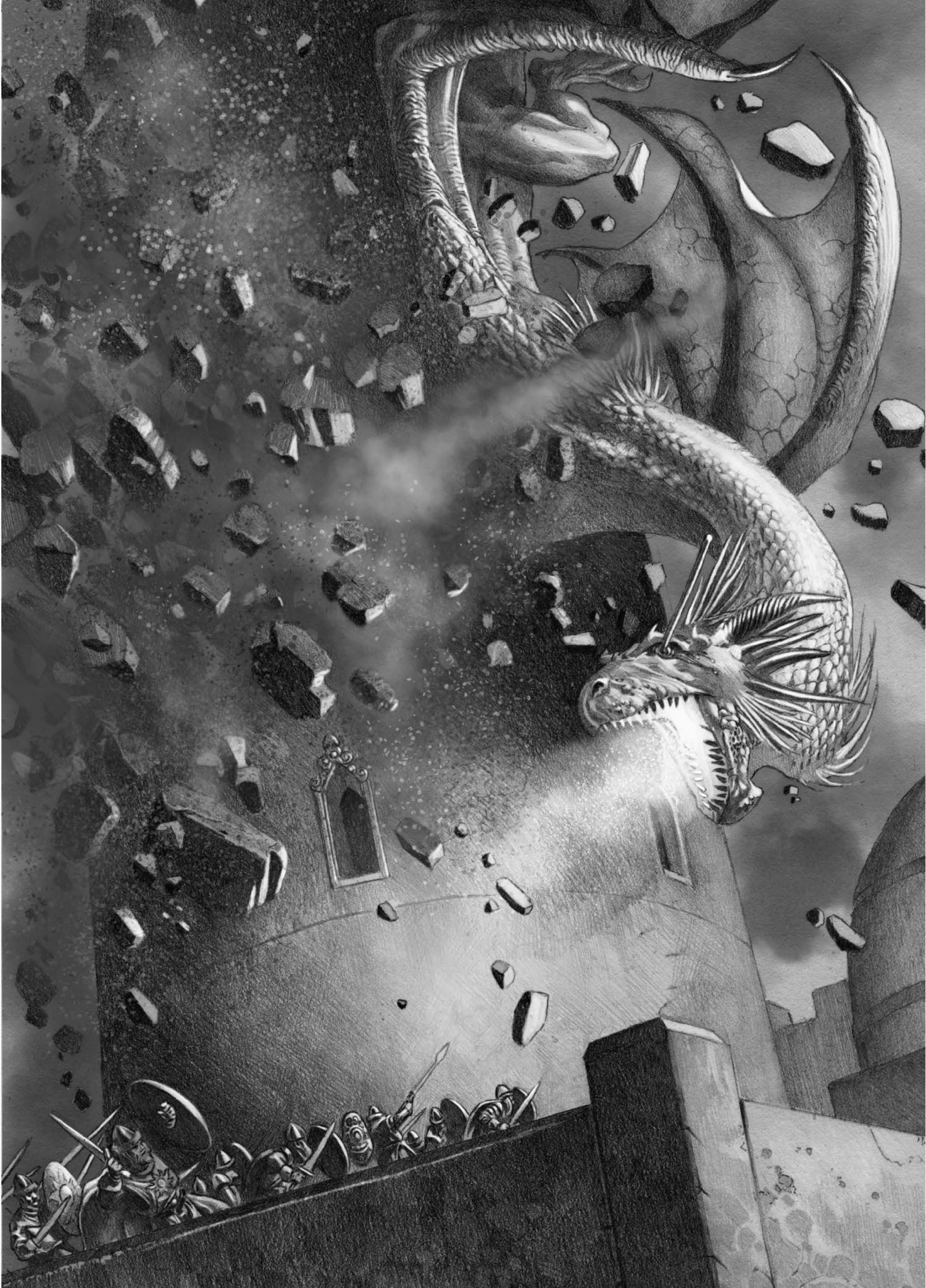 于是国王再次用巨龙开战。伊耿亲自飞向天及城,发誓让福勒家族的家堡成为“第二个赫伦堡”;维桑尼亚骑着瓦格哈尔,把血与火带到星坠城;雷妮丝骑着米拉西斯,返回狱门堡……悲剧就在此发生。坦格利安家的龙生来就被训练参战,历经无数飞矛箭雨的考验,很少受到伤害。成年龙的龙鳞比钢铁更坚硬,即便飞矢偶尔刺穿鳞甲,也不能带来严重后果——除了点燃巨兽的怒气。但米拉西斯在狱门堡上空盘旋时,城堡最高的塔楼上的一名守军扣动蝎子弩,射出一码长的铁矢,正中王后胯下那条巨龙的右眼。米拉西斯没有当即毙命,它在极度的痛苦中坠落在地,临死前的挣扎掀翻了那座高塔和狱门堡很大一部分外墙。