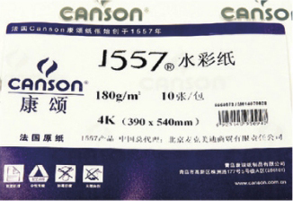 法国康颂1557水彩纸,180g中粗纹/细纹水,4开大小,单张水彩纸,价格便宜,但纸张略薄,绘制水彩画时需要裱在画板上才能方便使用,也是比较适合初学者日常练习使用的。
