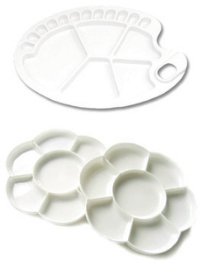 有材质、形状和大小的差异来区分,在普通的美术用品商店可以找到许多种,塑料的调色盘比较方便携带。