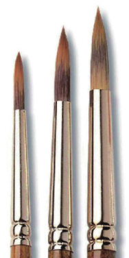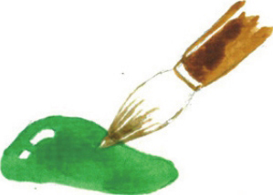 将画笔在清水中蘸湿,蘸上一点点颜料来使用。