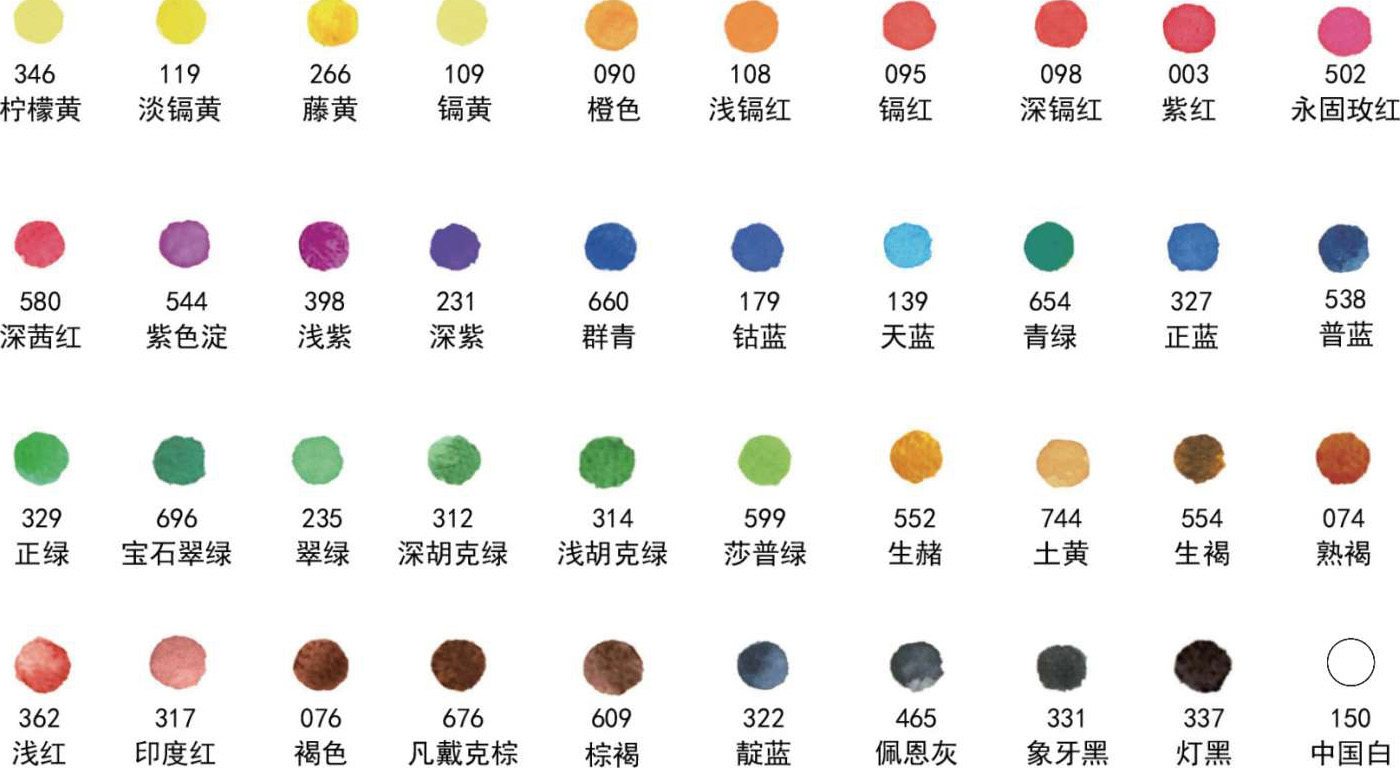 本书中我们选择使用温莎牛顿歌文固体40色水彩颜料