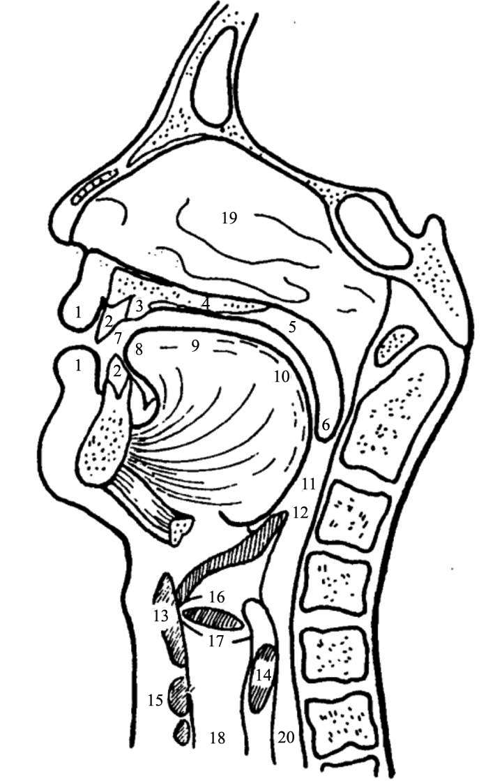 8.舌叶9.舌面前部10.舌面后部11.咽腔. 12.会厌