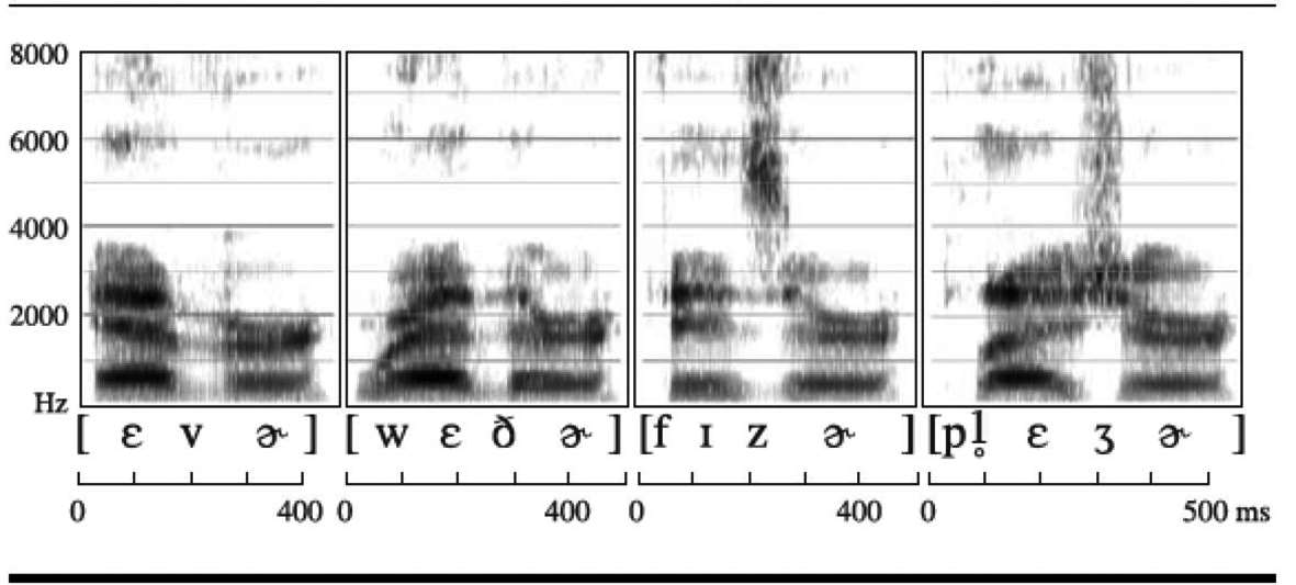 图8.10 ever , weather , fizzer , pleasure 的语图