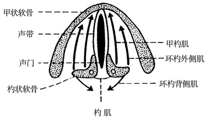 在喉头各软骨之间有各种肌肉,这些肌肉的作用,能牵引杓状软骨转动,使声带或紧或松,声门也随着呈现出不同程度的开闭状态。