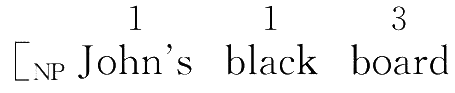 。作为名词,这个单位受规则(7)支配,规则(7)向“black”指派主重音,并在第二级弱化“board”的重音。删除最内层的括号,下一个循环的应用范围是