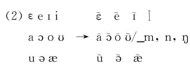 There is a rule in English which requires that all vowels be nasalized when they appear before a nasal consonant,and thus we have a rule something like(2).