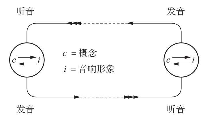 (c)主动部分和被动部分:凡从说话者的联想中枢到听者的耳朵的一切都属主动部分,凡从听者的耳朵到他的联想中枢的一切都属被动部分;