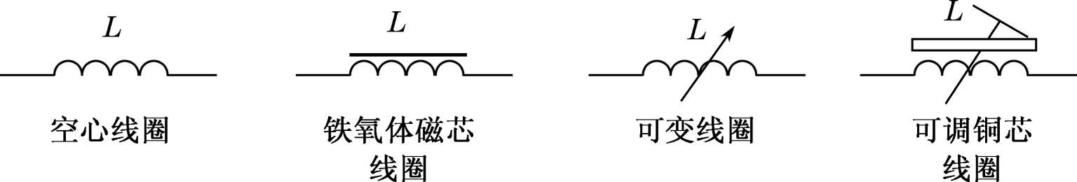 电感器在电路中用字母 L 表示。常用的图形符号如图1.9所示。