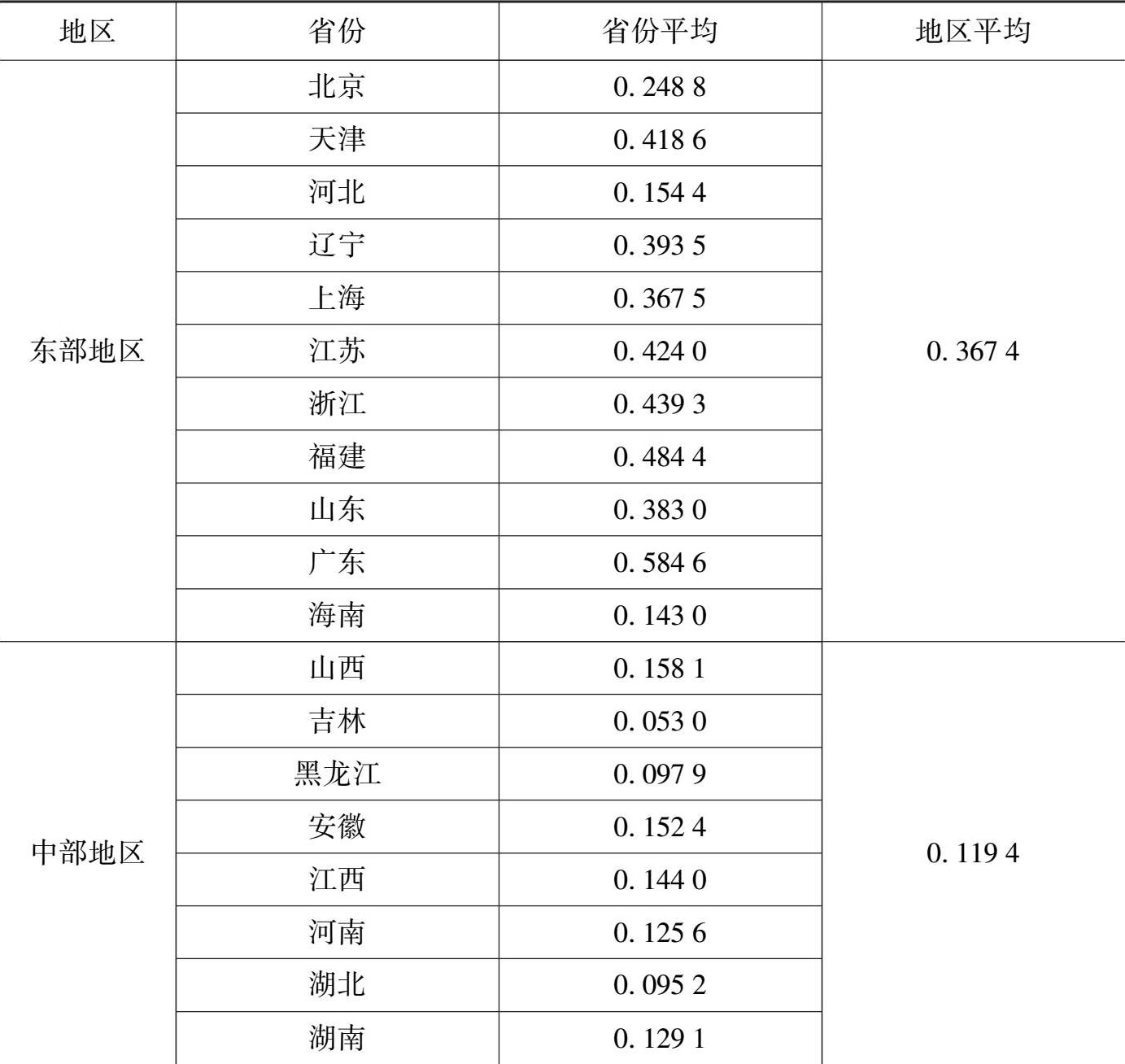 中国区域非均衡的开放战略使东部地区不仅具有开放的地理优势,而且有优先发展的政策优势,因此,东部沿海地区较内陆对外经济活动更活跃。本文按照王小鲁和樊纲(2005)的地区划分标准