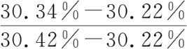 将四次测定结果按从小到大顺序排列:30.22%、30.34%、30.38%、30.42%,其中30.22%为可疑值。