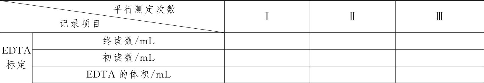 表1-2 0.02mol·L -1 EDTA溶液浓度的标定数据记录表