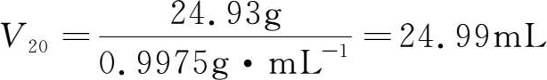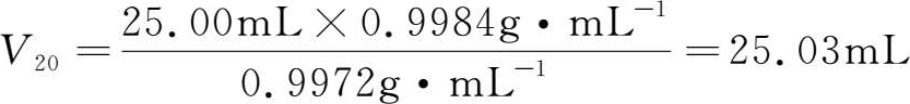 【例2-1】 在18℃,某一25mL移液管量出纯水质量为24.93g,计算该移液管在20℃时量出的实际体积。