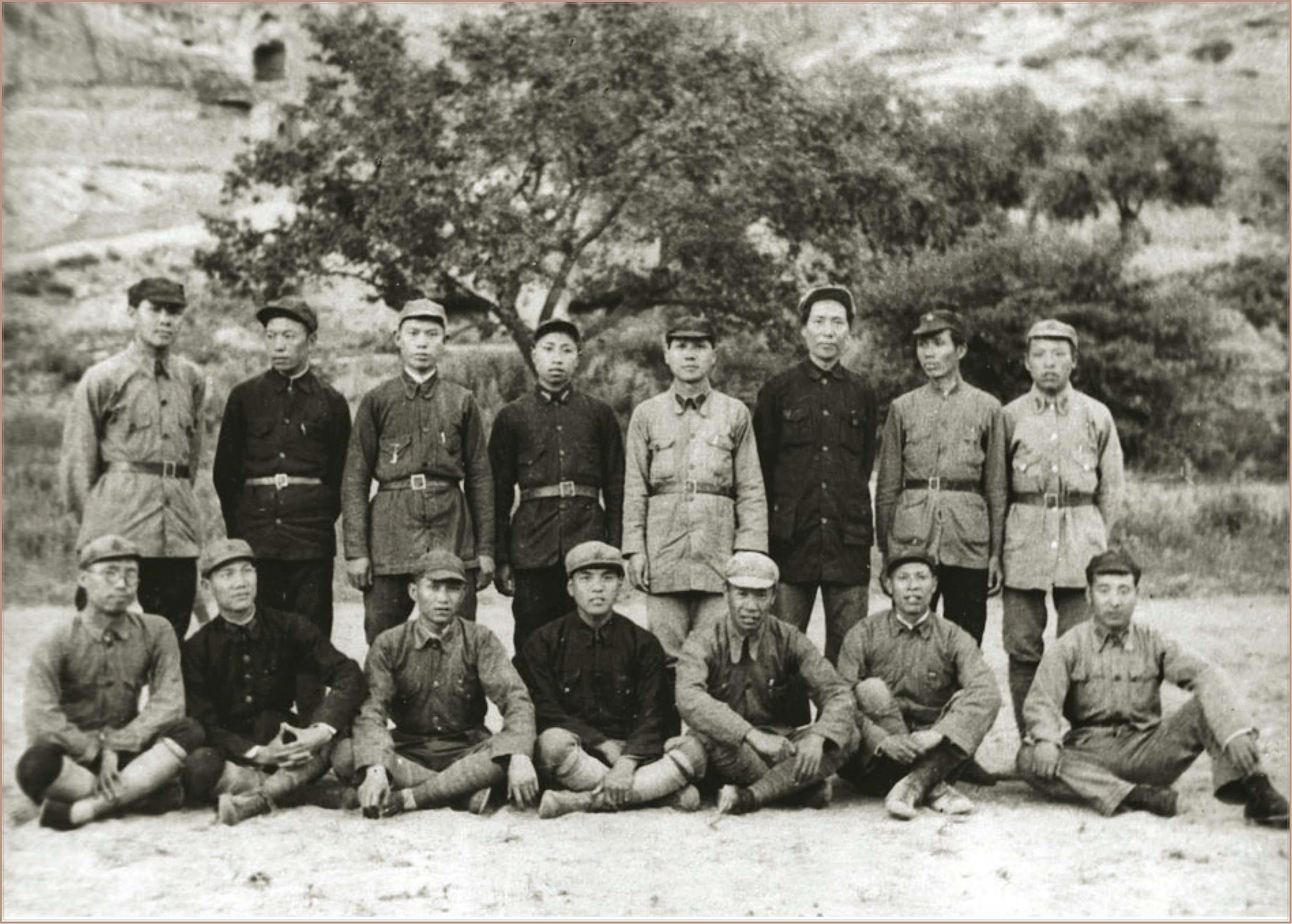 *1936年,毛泽东在陕北保安与红四军部分干部合影