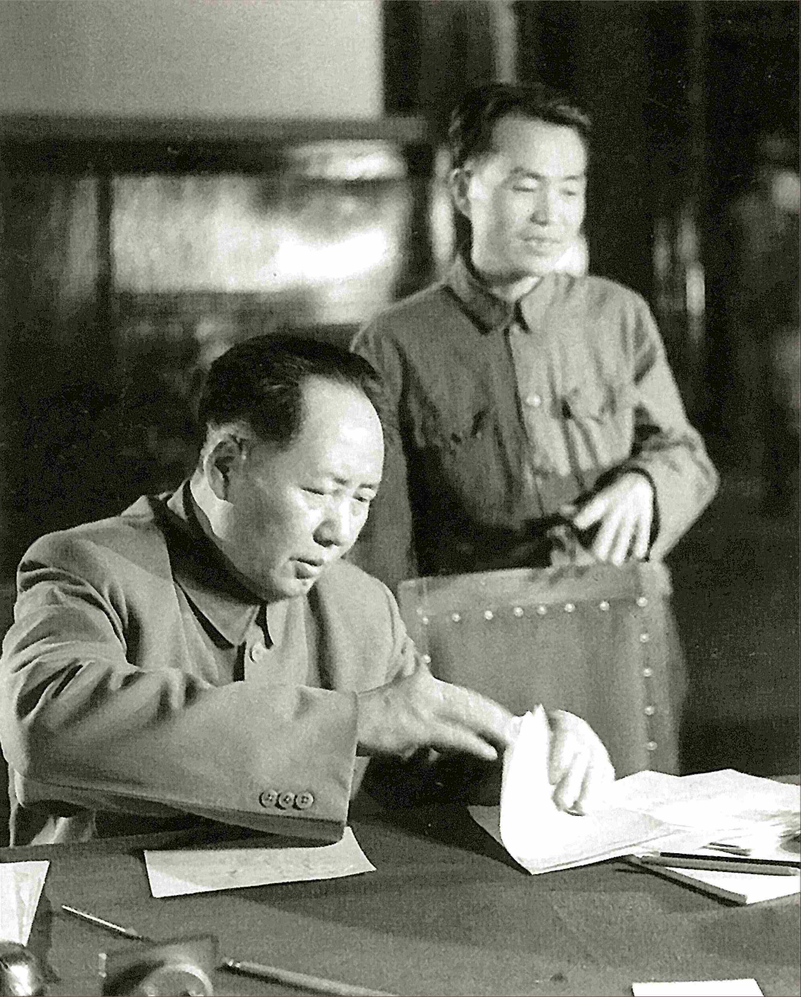 *1950年6月28日,毛泽东与胡乔木在中央人民政府第八次会议上