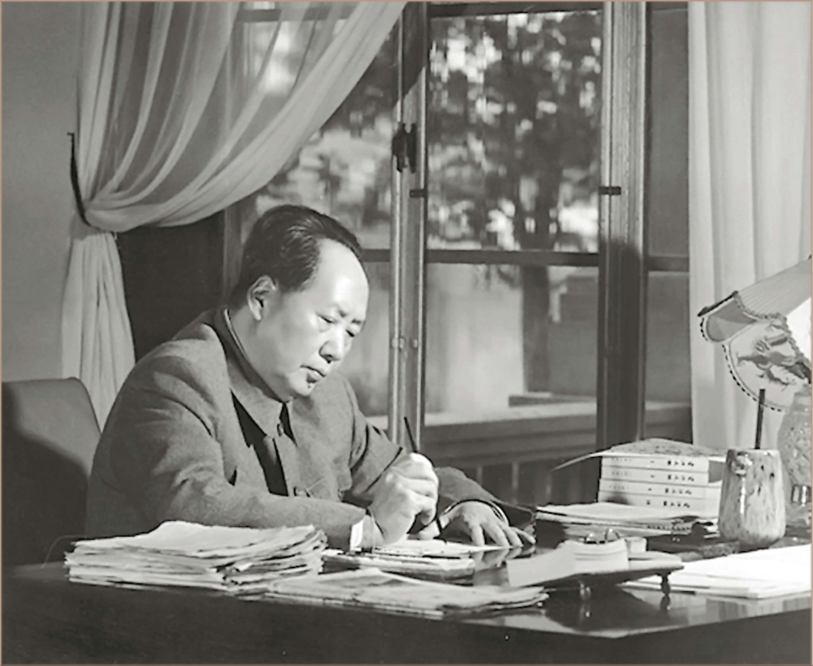 *1955年12月,在广州伏案工作的毛泽东