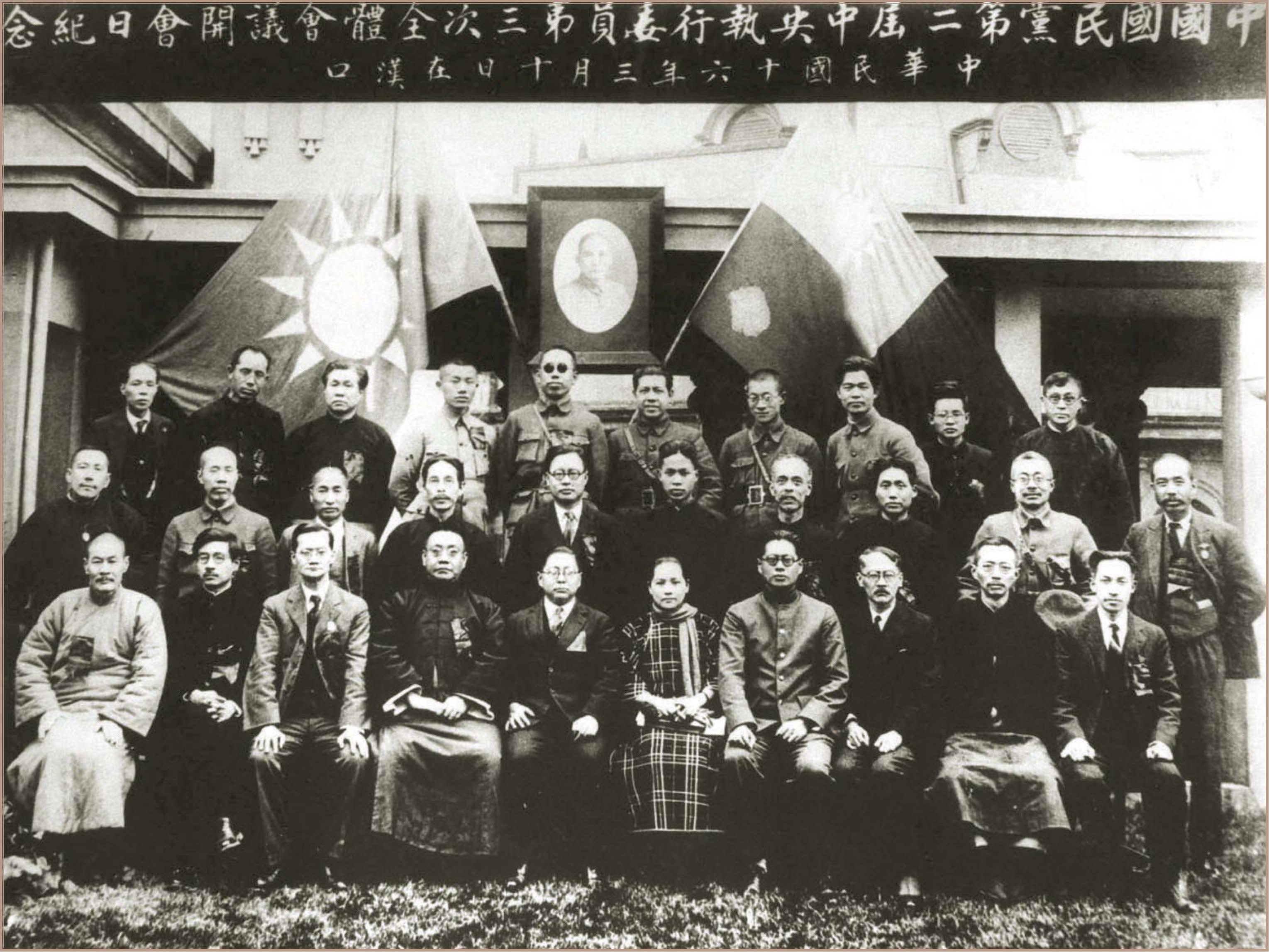 *1927年3月10日,国民党二届三中全会在汉口开幕时合影,中排右三为毛泽东