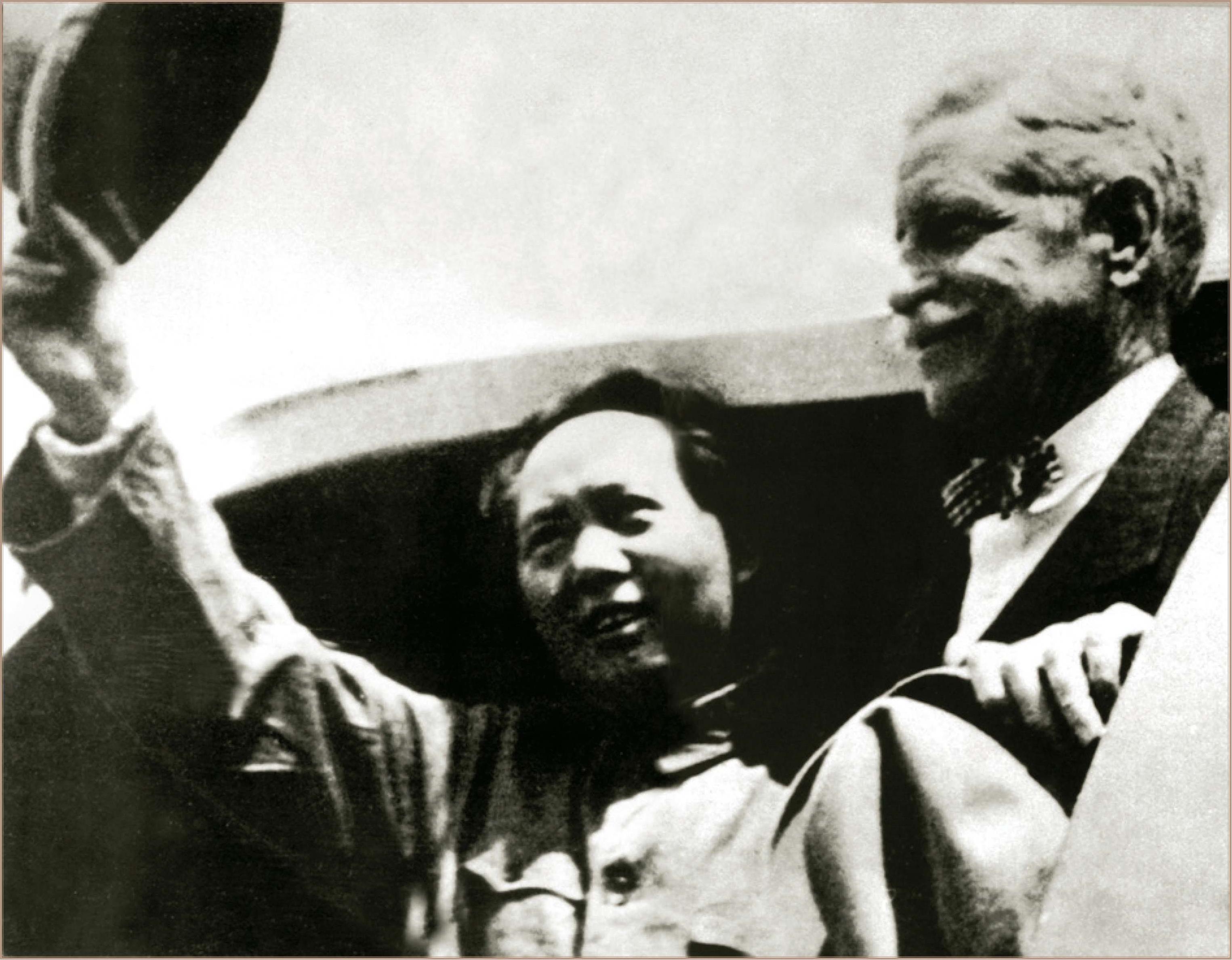 *1945年8月28日,毛泽东在延安机场向欢送的群众挥手告别