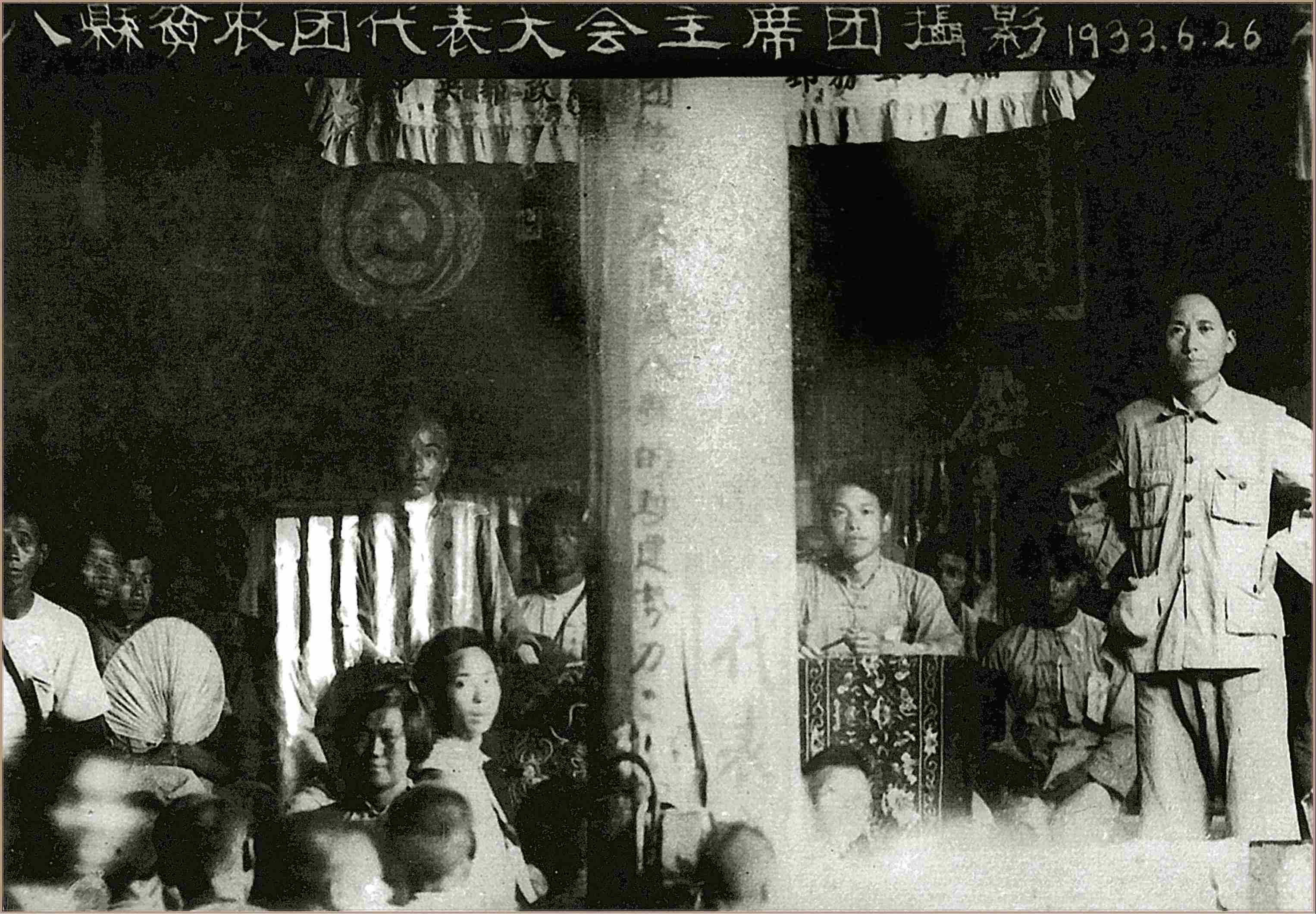 *1933年6月26日,中央苏区八县贫农团代表大会主席团合影,右一为毛泽东