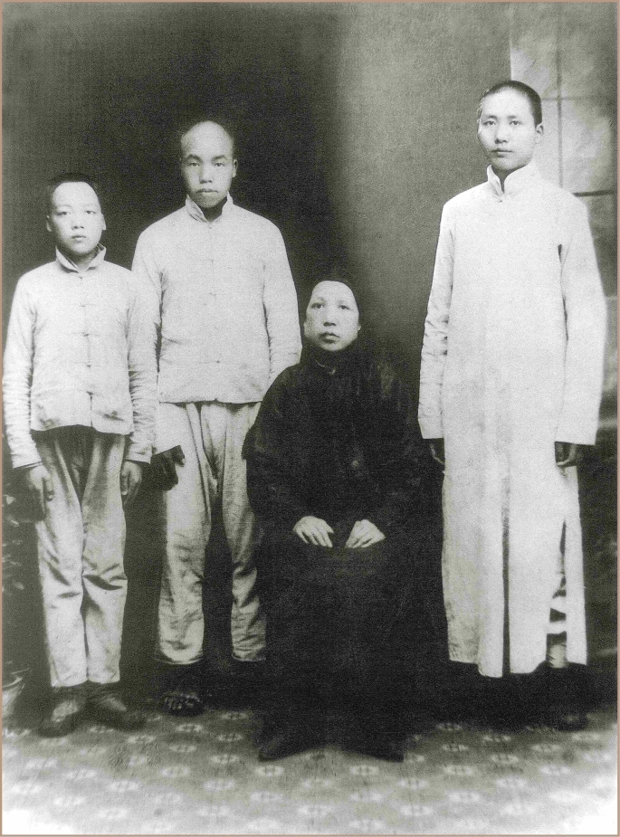 *1919年春,毛泽东、毛泽民、毛泽覃与母亲在长沙合影