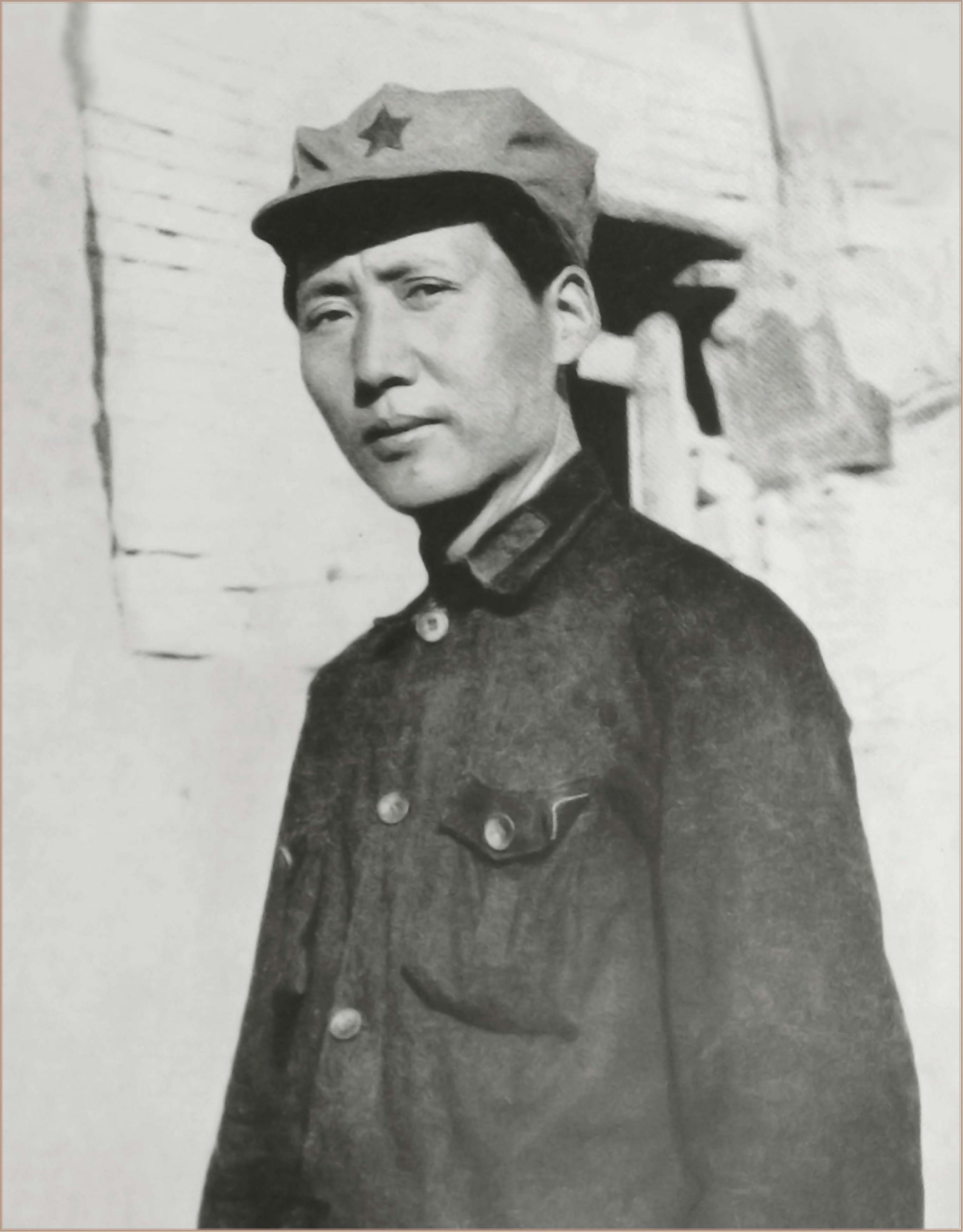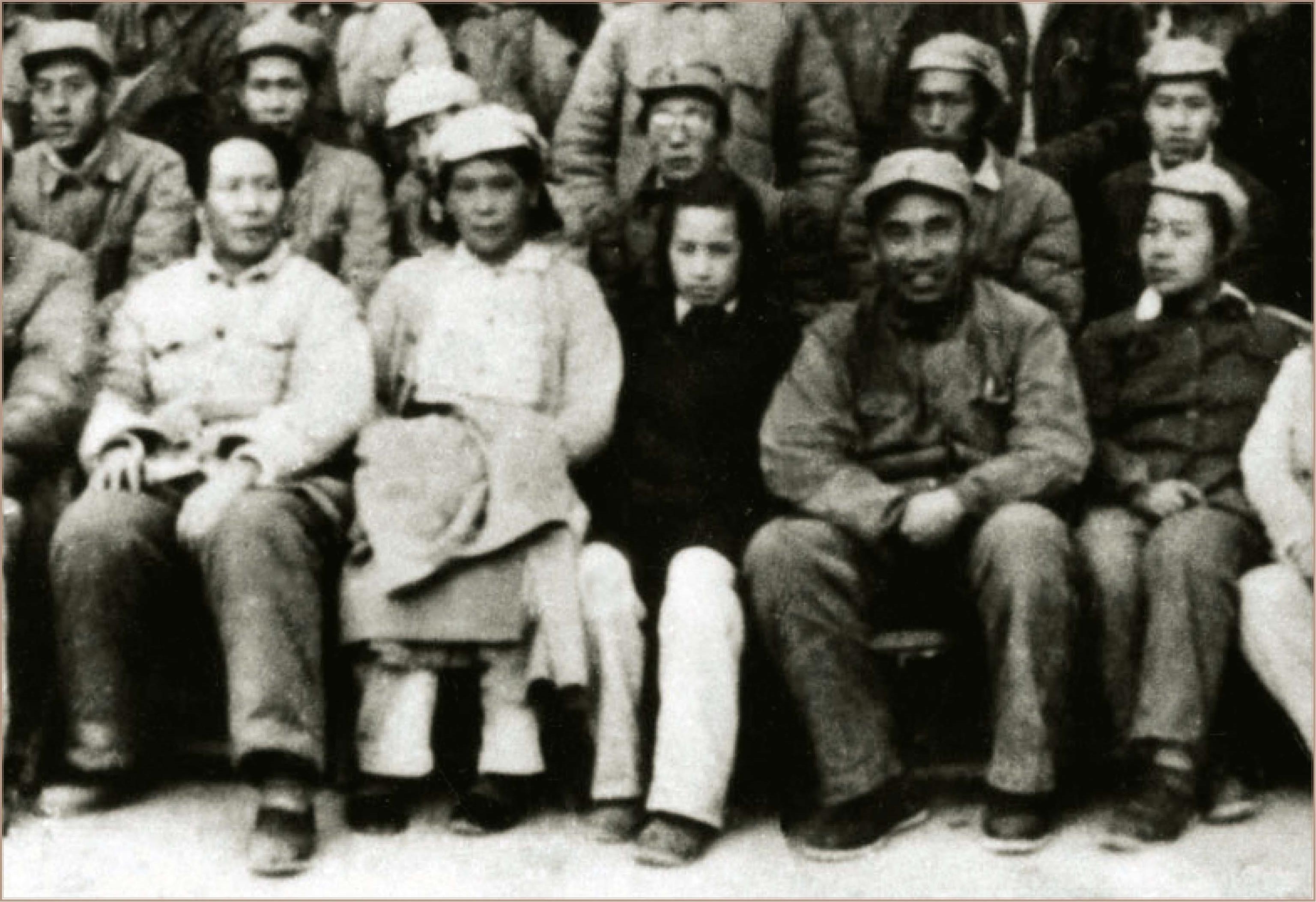 *1936年,毛泽东在陕北保安与红四军部分干部合影