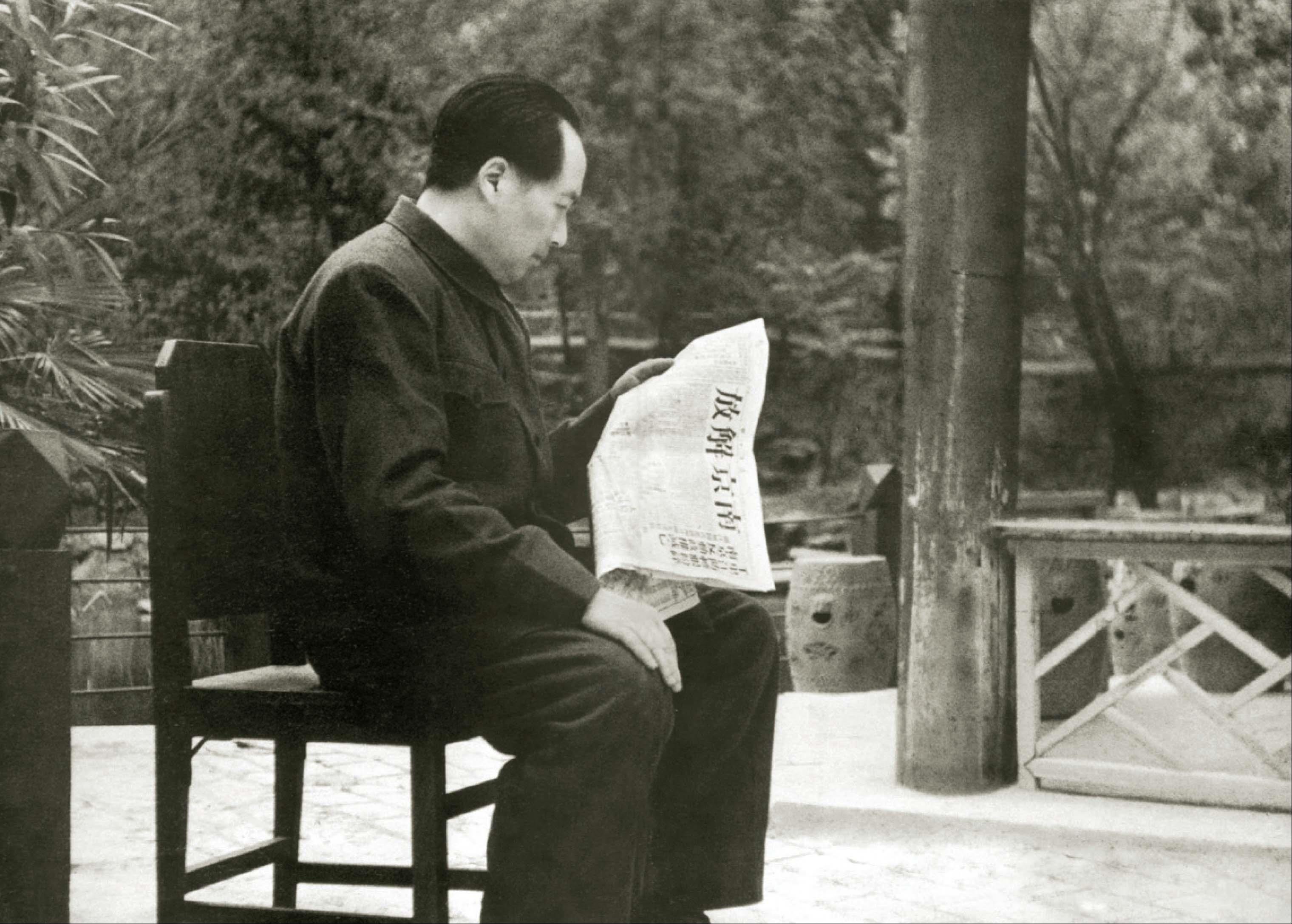 *1949年4月,毛泽东在北平香山双清别墅翻阅刊载南京解放消息的报纸