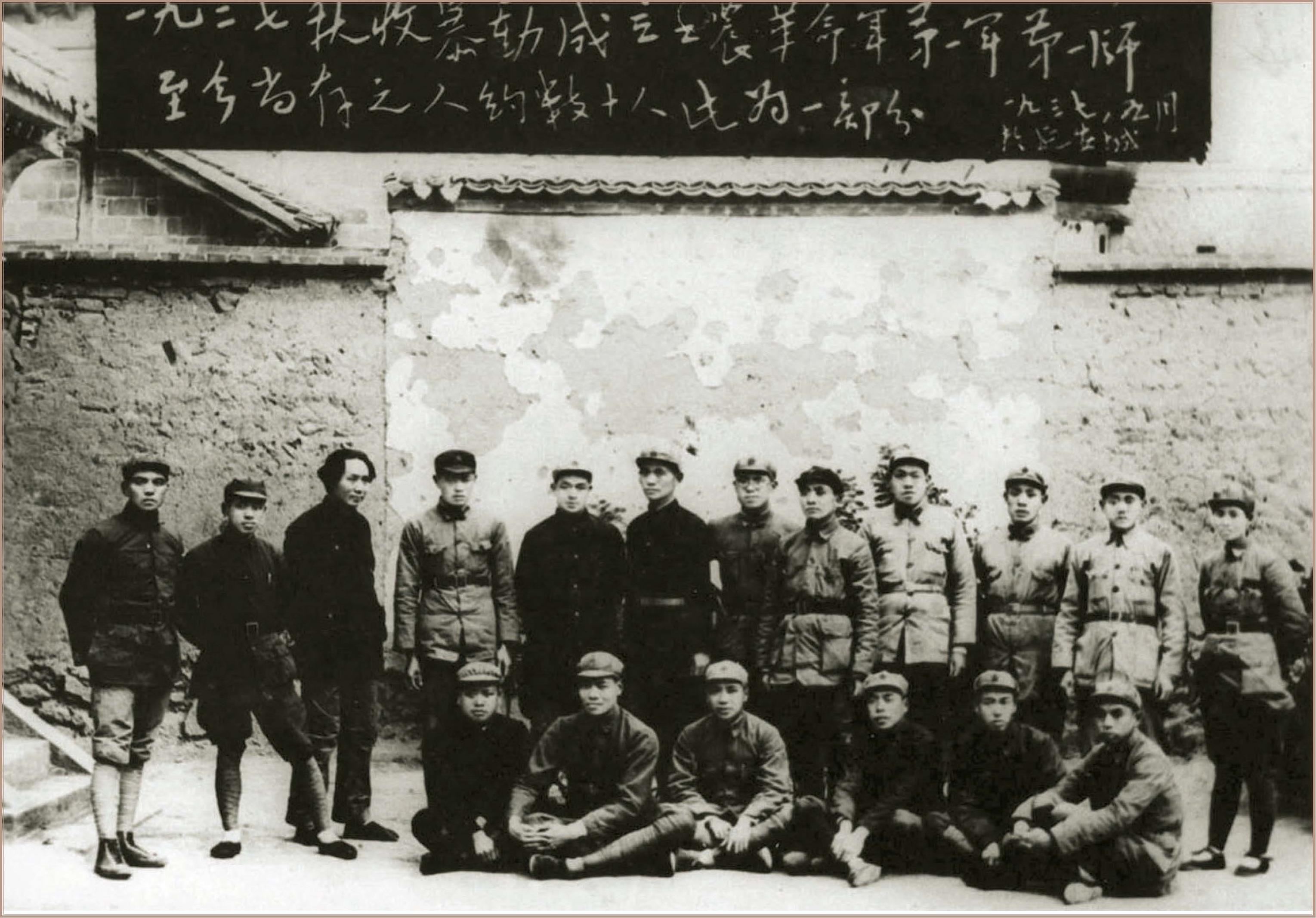 *1937年5月9日,毛泽东在延安与参加秋收起义的部分同志合影