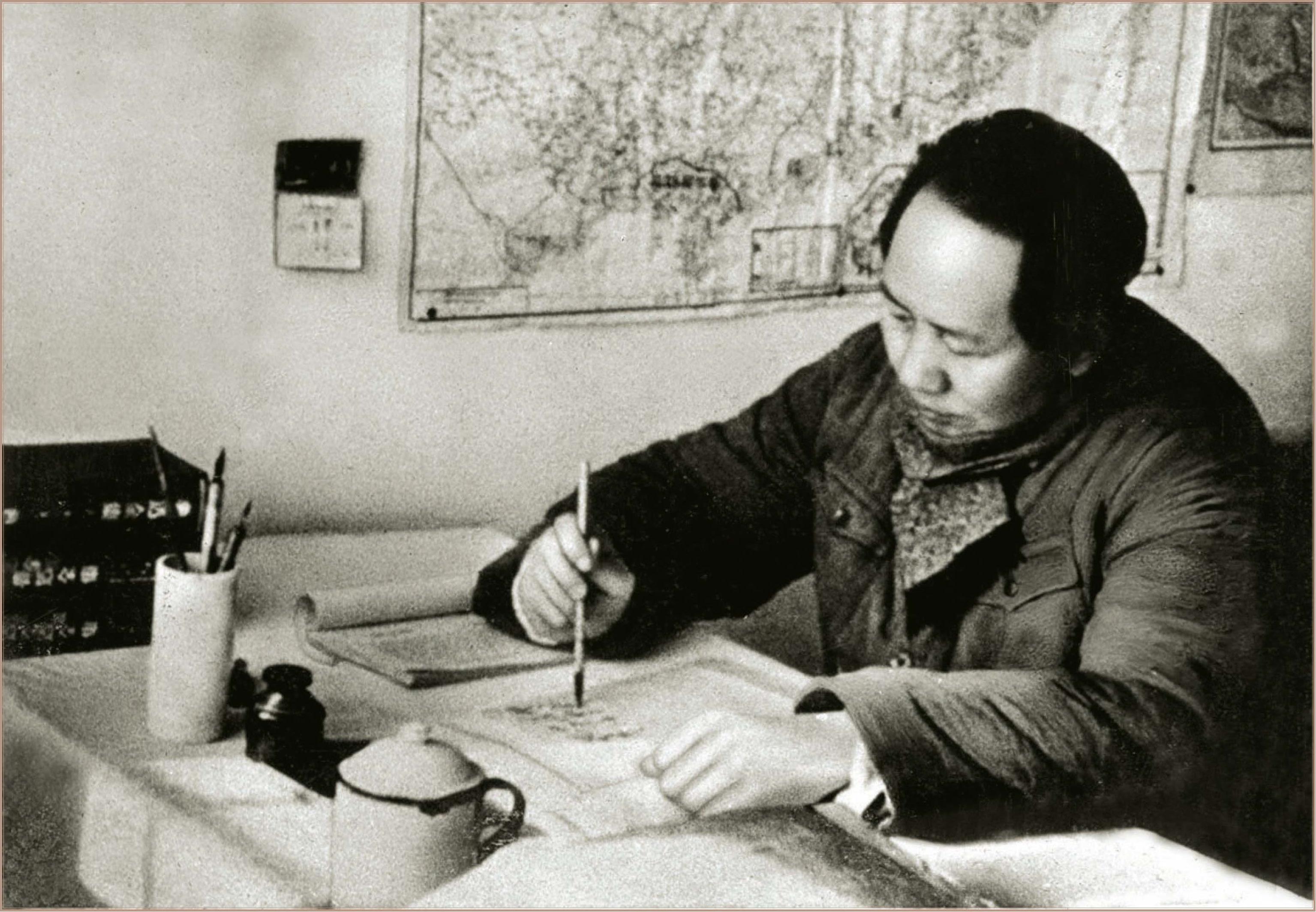 *1946年冬,毛泽东在延安枣园窑洞中伏案工作