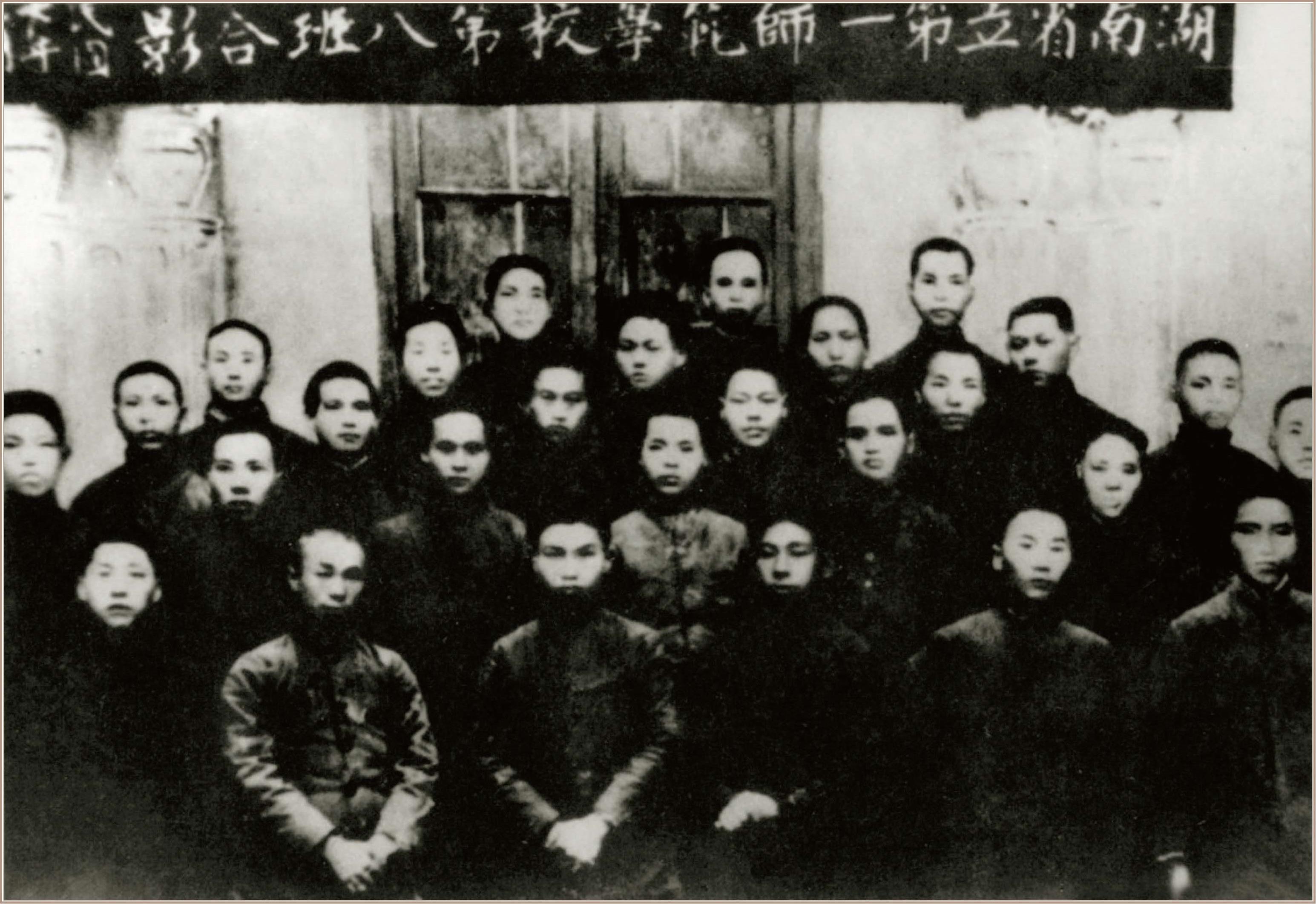 *1918年3月,湖南省立第一师范第八班合影,四排右二为毛泽东