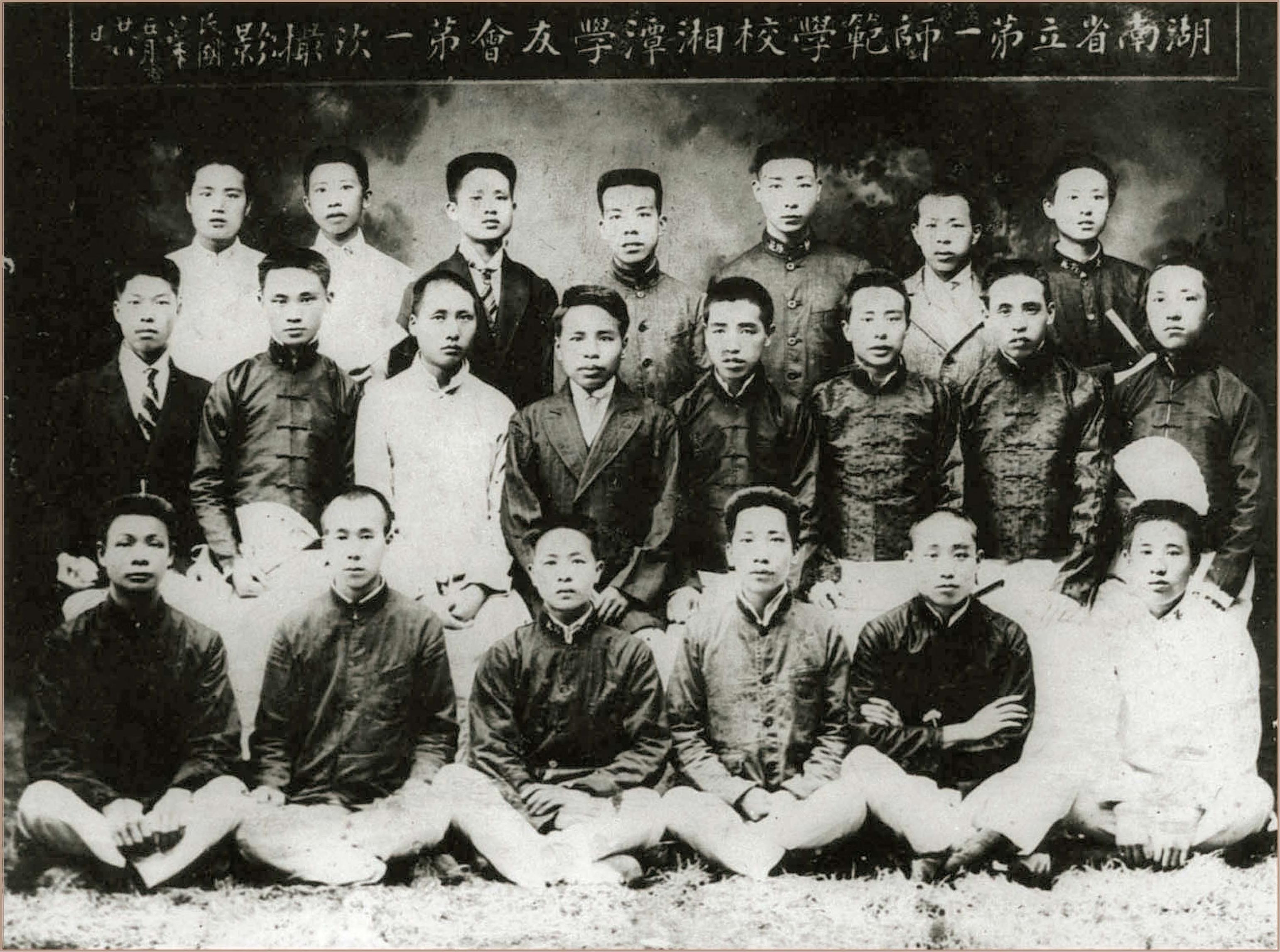 *1919年5月,湖南省立第一师范学校湘潭学友会合影,二排左三为毛泽东
