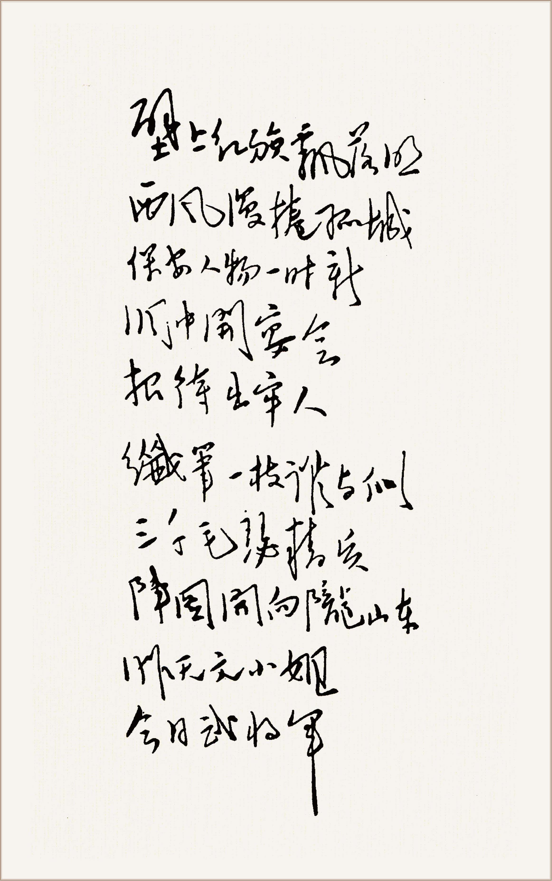 *《七绝·为女民兵题照》手迹