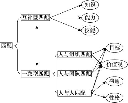 在当前匹配理论的讨论中,主要将匹配区分为互补型匹配和一致型匹配两种。互补型匹配是指当一方能够提供另一方所需要的内容时所达成的一种匹配。例如,螺钉和螺母的匹配就是一种互补型匹配。互补型匹配理论认为,当组织和个人在这些方面达到互补时,能够形成一种双赢的状态,促进组织目标和个人目标的达成。一致型匹配则是指当个人和组织在某方面存在一致性时所形成的一种积极的状态。例如,当个人价值观和组织文化契合时(人与组织匹配),当个人目标和团队目标契合时(人与团队匹配),当个人对领导的领导方式、性格、沟通方式的预期同其领导者的领导方式、性格、沟通方式相一致时(人与人匹配)所形成的积极的状态。一致型匹配理论认为,当组织和个人在这些方面达成一致时,能够改变员工的工作态度和促进组织内的沟通,形成信任和友善的工作环境,从而提高效率,达成目标。