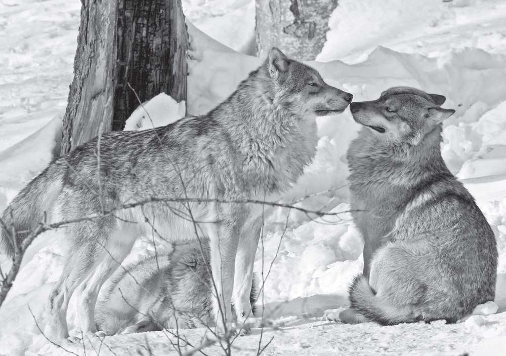 当然,狼群的大家长也并非完美。它们同样会情绪化,表现出生气、失望、不耐烦,或者喜悦、兴奋和爱慕。和人类一样,这些情绪的变化如此正常与频繁,就好像你因为早上第一步迈错了脚,而感觉接下来的一天都不顺利。不过,就算是头狼陷入窘境或失去耐心,狼群成员间的信任仍然坚不可摧。