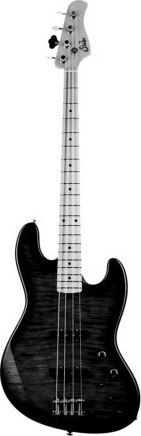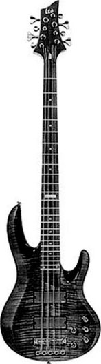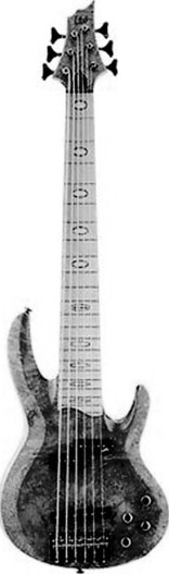 贝斯又叫低音吉他,它与电吉他的原理基本一样,但贝斯通常都是四根弦,使用的琴弦也要比电吉他琴弦粗很多。在音乐演奏中,贝斯主要负责演奏低音部分。当然,除了四弦贝斯以外,还有五弦贝斯、六弦贝斯,甚至是八根琴弦的贝斯,如下图所示。
