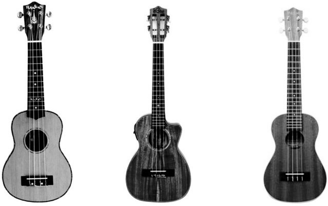 尤克里里又叫夏威夷吉他,是整个吉他大家族中尺寸最小的成员,通常是挂在胸前弹奏。尤克里里通常都是四根弦,使用的也是尼龙材质。由于尤克里里个头小,方便携带,简单易学,所以很受小孩和女生喜爱。