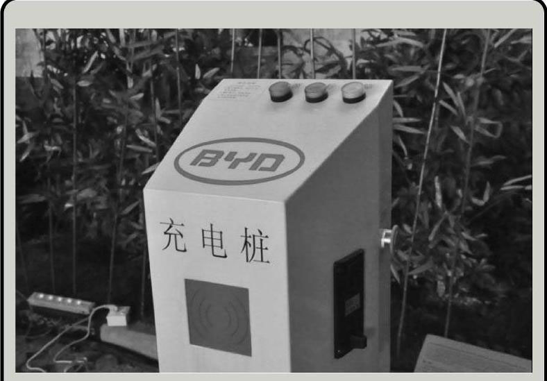 (3)充电便捷 对于电动车,最担心的就是电能补充问题。DMⅡ代电动车上的电机还可以作为发电机,在减速时将动能转化为电能储存在动力电池组中,适用于频繁加减速的市区行驶。另外也可用普通家用电源和停车场充电桩(图1-41)等220V家用电源充电。