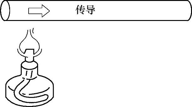 (1)传导 在受热不均匀的物体中,通过分子运动,将热能由较热的一端传到较冷的一端的过程称为传导。这种交换方式将一直进行到整个物体的温度相等时为止,如图1-9所示。